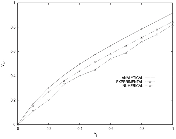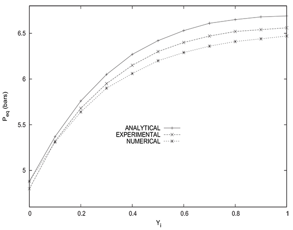 Based on the comparisons presented, one can conclude that the agreement between the experimental and numerical results relative to Peq and Yeq is very satisfactory.