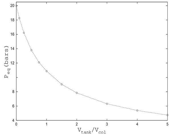 The fourth condition implies that the column and the tank become identical at the end of the equalization step. This approximation may appear very rough, but as will be seen later, the value of the equalization pressure obtained considering these hypotheses is more accurate than the arithmetic or geometric mean.