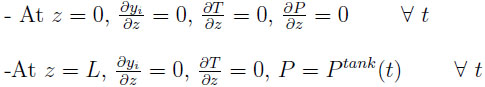 The initial conditions for the bed and the tank should also be defined. The pressure is PH in the bed and PL in the tank. The axial profiles of composition and temperature at t = 0 in the bed correspond to those of the final state attained during the step preceding the equalization step.