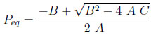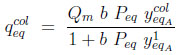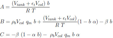 The system of 5 equations (9) to (13) relates 6 unknowns (the four mole fractions y, the adsorbed quantity qcoleq and Peq ). By substituting equations (11) to (13) into Equations (9) and (10), three of these variables can be eliminated, leaving a system of two equations with three unknowns, Peq , ycoleqI and ytankeqI for example. To resolve analytically, an additional assumption needs to be made. We shall assume here that the column and the tank have identical gas phase compositions at the end of equilibration (thus, ycoleqI = ytankeqI ), leaving only two unknowns. The analytical resolution then leads to a quadratic equation whose positive root is