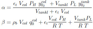 are the concentrations of gas component i at the tank inlet and in the tank respectively. The tank is considered perfectly mixed.