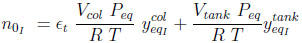 Where the total number of moles in the system n0 is given by the sum of Equations (7) and (8). The subscript eq refers to the end of the equalization step.