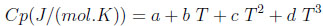 The constants a, b, c and d for the two gases are listed in Table 3.