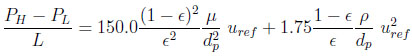 The reference pressure is taken as Pref = PH . The reference velocity uref is calculated using Ergun’s correlation as follows:
