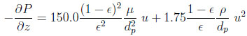 wherein u is the interstitial fluid velocity, ϵ the bed or the interparticle void fraction,ϵp the intraparticle void fraction or porosity,