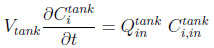 A fluid phase mass balance for the component i in the tank is given by the following equation: