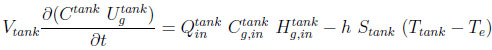 ,the gas concentration and the gas internal energy in the tank,