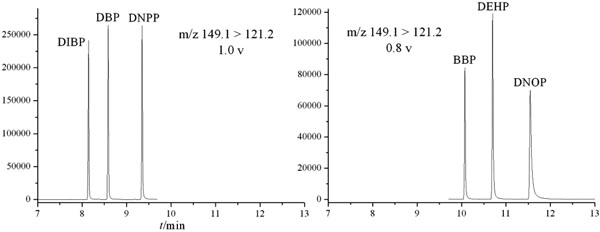 Solution A: A 50 µL volume of the completely mixed standard solution containing the six plasticizers at a concentration of 50 mg/L concentration was added with 20 mL water and completely mixed.