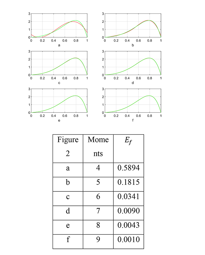 Theoretically, we can determine ƒ from the given finite sequence Miƒ of all orders. However, encountered with an underdetermined problem, we tried to match up to the given, or allowed moments. Therefore, a numerical approach is presented to find a function that matches ƒ up to some order of moments. We can work with a shifted – scaled form of ƒ so that it is supported on the interval [0, 1] with