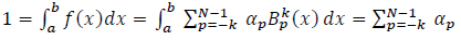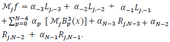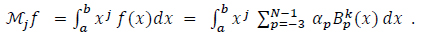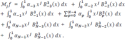 Where A is (N + k) X (N + k) matrix of B-splines moments on the interval [a, b], α is the vector of the N + k unknown coefficients and Mƒ is the vector of the known - k, 0, ...,N - 1 moments of ƒ.
