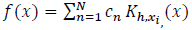 The bandwidth h of the kernel is a free parameter which exhibits influence on the resulting estimate and satisfies the coefficients cn.
