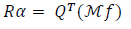 System (18), built from (21), can be ill-conditioned for a large size computation. We treat this behavior by the following transformation of data: Let A = QR be the QR-factorization, which is a decomposition of the matrix A where R is an upper triangular matrix and Q is an orthogonal matrix i.e. QQT = I where T denotes the transpose and I is the identity matrix. Then, one can show that the system (18) is equivalent to