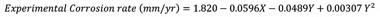 Where Y is the response predicted value (corrosion rate), where d0 represents offset term, d1, d2, and d3 represent the linear coefficients, d11, d22, and d33 are quadratic terms while d12, d13, and d23 are cross products. The experiments were conducted in triplicates and the average value was used. The experimental data of BBD design matrix and their experimental responses are tabulated in Table 2. Minitab 17 statistical software was utilized for designing experimental sets and analysis of data using response surface methodology-Box Behnken design.