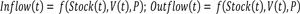 Where, V(t) is an auxiliary variable in time t. For example, in the lithium model, the brine process as flow depends on the amount of extracted brine and the stock of the global supply of lithium. P represents input parameters, such as the concentration of production and coefficient of processing (all input parameters are given in Appendix, Tables A2, A3).