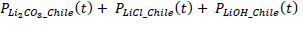 | β2 | Lithium chloride coefficient from lithium carbonate process | % | 13 | 2015 | [40] |