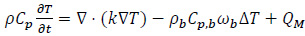 The heat transfer phenomenon in biological systems can be described by the microscopic energy balance equation in the form derived by Pennes for a perfused tissue [10, 18]: