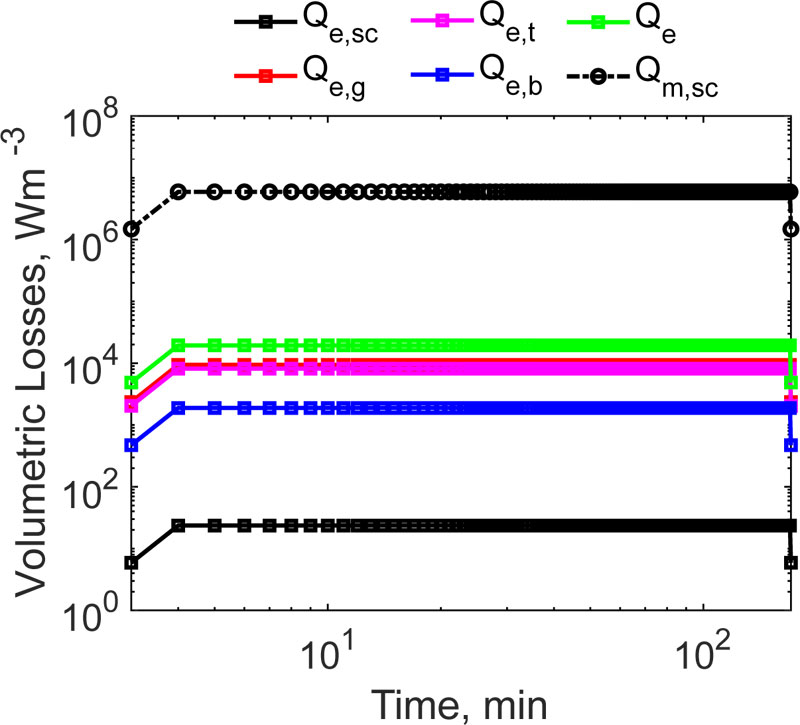 where QEM includes the power per volume unit, which is dissipated by the dielectric losses in tissues (P e), due to induced RF currents, and the power which is stored and dissipated in the magnetic implant (P m). In mathematical terms: