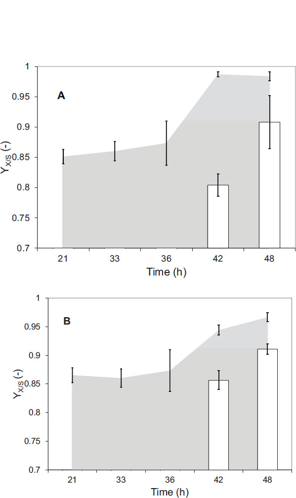 Finally, the substrate oxidation yield (YO2/S) and the biomass yield (YX/S) were calculated following Eq. (5), which represents the growth on a carbon source, such as fructose, of a given heterotrophic microorganism.