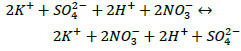 When a nitric acid solution interacts with an enriched potassium-magnesium salt, the dissolution of potassium and magnesium sulphate occurs due to the ionic strength of the acid. Moreover, since the reactions proceed without the formation of precipitate or gas, then the interaction of reagents is represented by the transfer of potassium, magnesium and sulphate ions into the solution with the formation of a solution of equilibrium composition.
