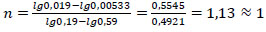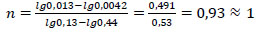 The reaction (1) order (n) was determined by the Van't Hoff method using the logarithm of the ratio of reaction rates and concentrations at two times: