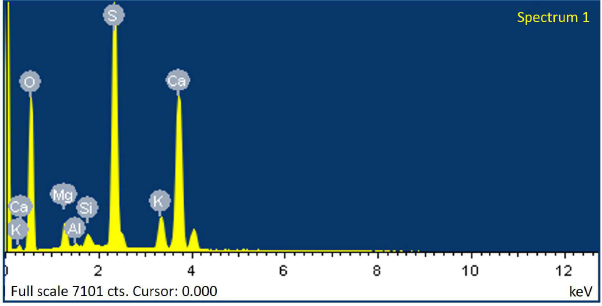 Potassium and sodium content in raw materials and processed products was determined using Quant-2 atomic absorption spectrometer, as well as the PFA-378 flame photometric analyser. IR spectroscopic examination of ore samples was carried out using Shimadzu IR-Prestige IR-Fourier spectrometer 21 (Japan) with a Miracle attenuated total internal reflection attachment from Pike Technologies in the range of 400–1300 cm-1. X-ray identification was carried out on DRON-3 stationary installation with Cu-Kα radiation. Semi-quantitative XRD analysis of solid phase samples was carried out using the D8 AdvanceBruker apparatus (Germany). The processing of obtained diffraction pattern data and calculation of interplanar distances were carried out using the EVA software. For microscopic spectral analysis of raw materials and products, a scanning electron microscope (SEM) JEOL JSM-6490LV (Japan) was used. The thermodynamic probability of the occurrence of reactions was studied using the HSC-6.0 Chemistry software package (metallurgical company “Outocumpu”, Finland).