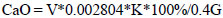 Where V is the amount of KMnO4, ml; 0.002804 is the coefficient for recalculation; K is the correction to the titer of 0.1 N KMnO4 solution; 0.4 is the coefficient taking into account the determination from the aliquot part of the solution or dilution of the solution, and G is a dry sample in grams.