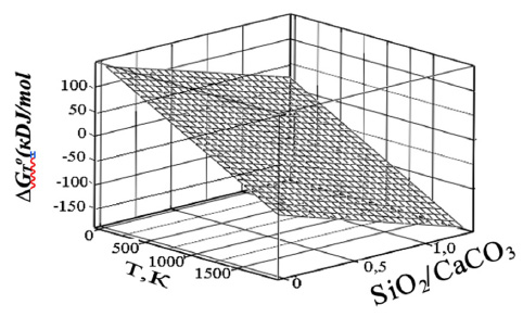 The effect of the SiO2/CaCO3 ratio and temperature on the shape of the surface- ∆GTodecarbonization.