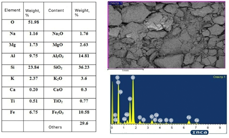Microstructure and element composition of bentonite clay.
