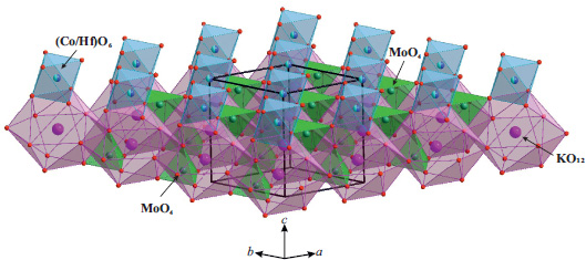 The KCo1/2Hf1/2(MoO4)2 structure exhibits a layered crystal structure. Two distinct layers are oriented perpendicular to the c-axis: the first layer comprises (Co/Hf)O6 octahedra, while the second consists of KO12–icosahedra and MoO4–tetrahedra, which are connected through shared oxygen edges (Fig. 2).