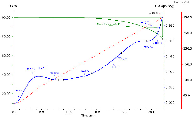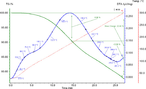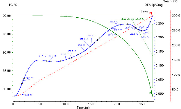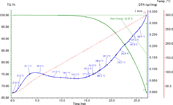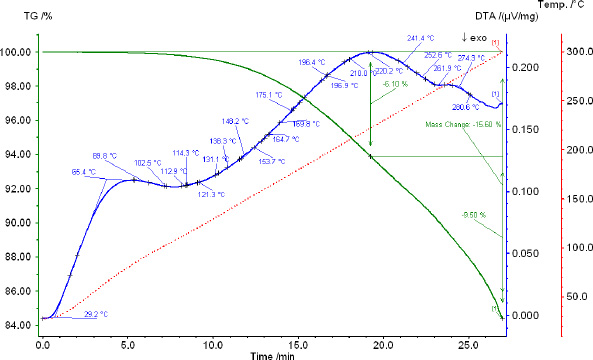 Thermogram of a phosphoric and sulfuric acid mixture with a P2O5:SO3 ratio of 1:2.3.