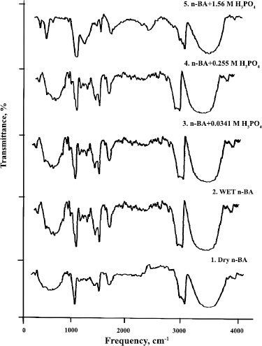 IR spectra of extracts in the system n-BA - H3PO4 - H20.