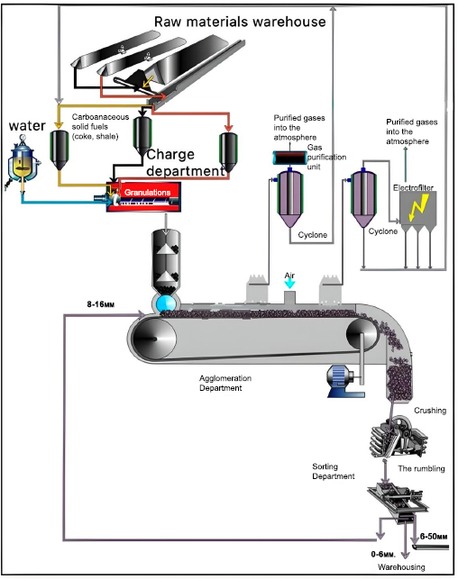 The technological process for the production of yellow phosphorus and its compounds begins with the preparation of an agglomeration charge (phosphorite containing more than 22.0% P2O5, coke and its substitute containing at least 80% C, and quartz–containing material), sintered on sintering machines to produce an agglomerate cake [68, 69].
