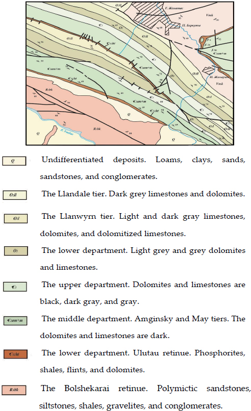 The Karatau phosphorus ores are characterized by a length of more than 120 km and the presence of productive strata, the reserves of which amount to more than 1.2 billion tons. Geological studies of these areas have revealed that there is a powerful phosphorite stratum extending up to 70 meters along the northeastern branch of the Karatau. Moreover, the most interesting industrial accumulations of phosphorites turned out to be not in the area of Zhetymtal Mountain, where rocks with a high content of phosphoric anhydride were first discovered by I. Mashkara, but much further to the northwest, in the basin of the Koksu and Ushbas rivers [4-7].